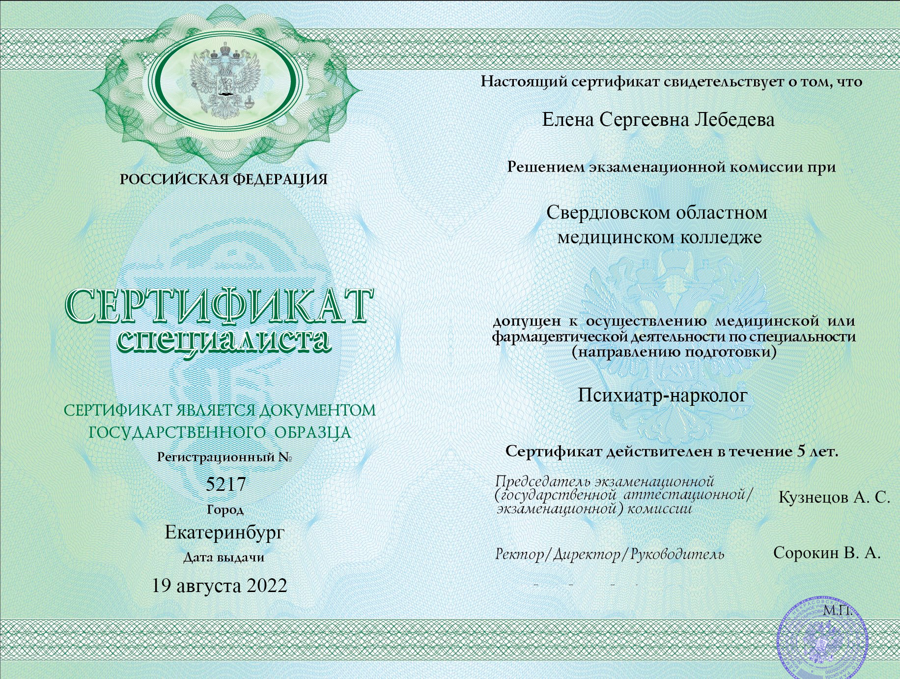 Елена Сергеевна Лебедева врач нарколог клиники доктора Стукаловой в Бологом
